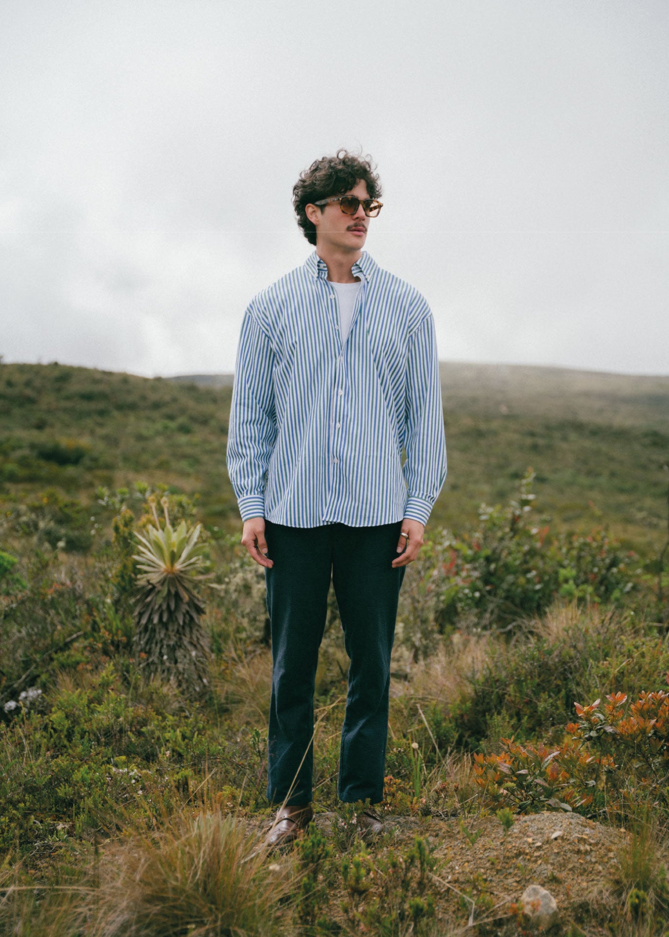 El cuello button down, ligeramente más alto, le imprime un aire retro que se siente actual.